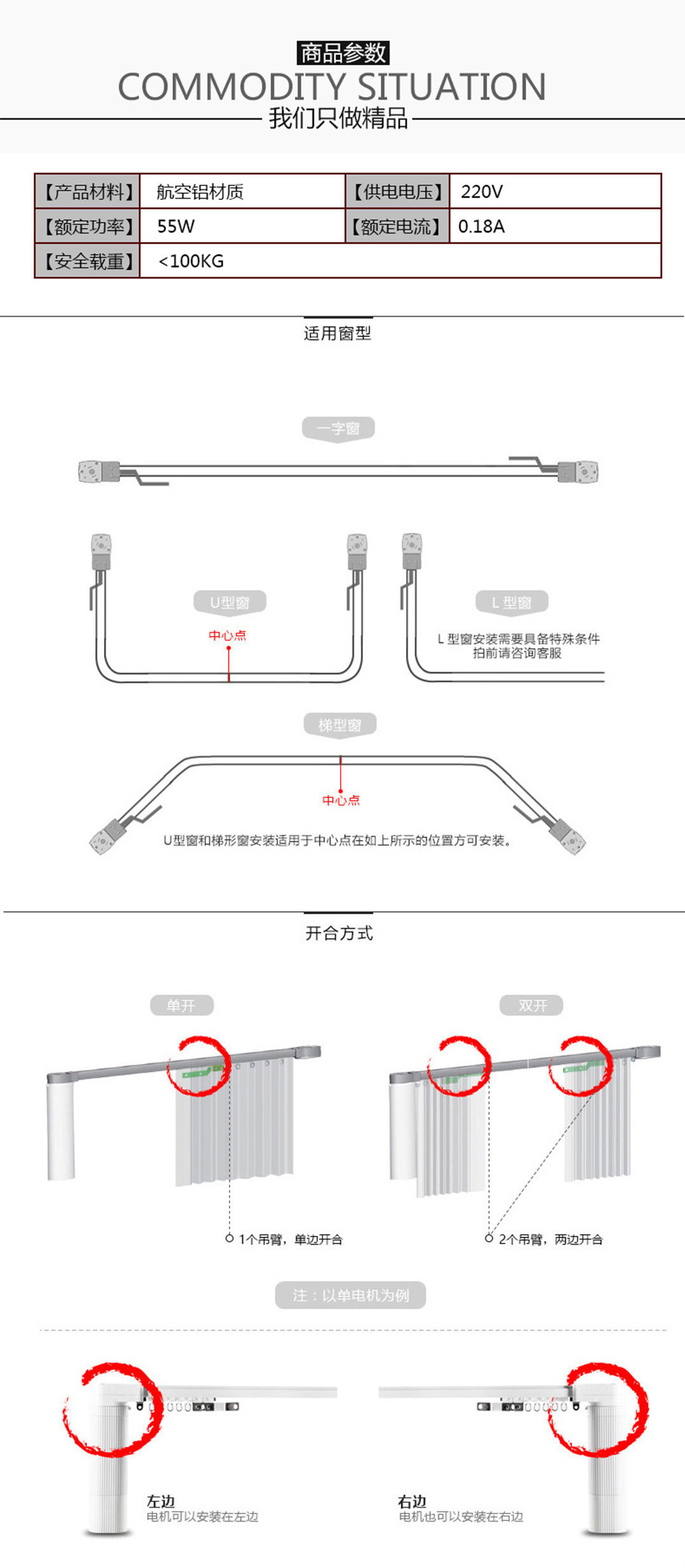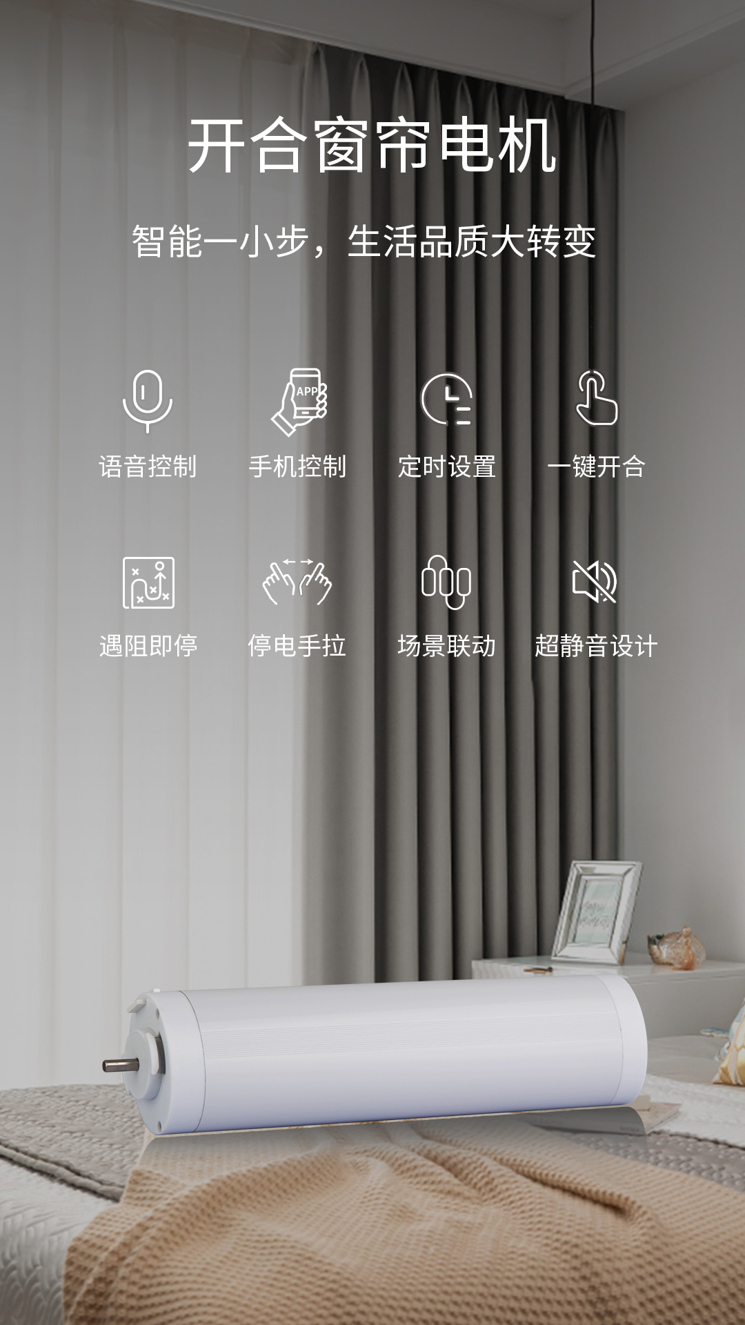 內(nèi)置型電機(jī),無(wú)需搭配窗簾開關(guān)即可使用;