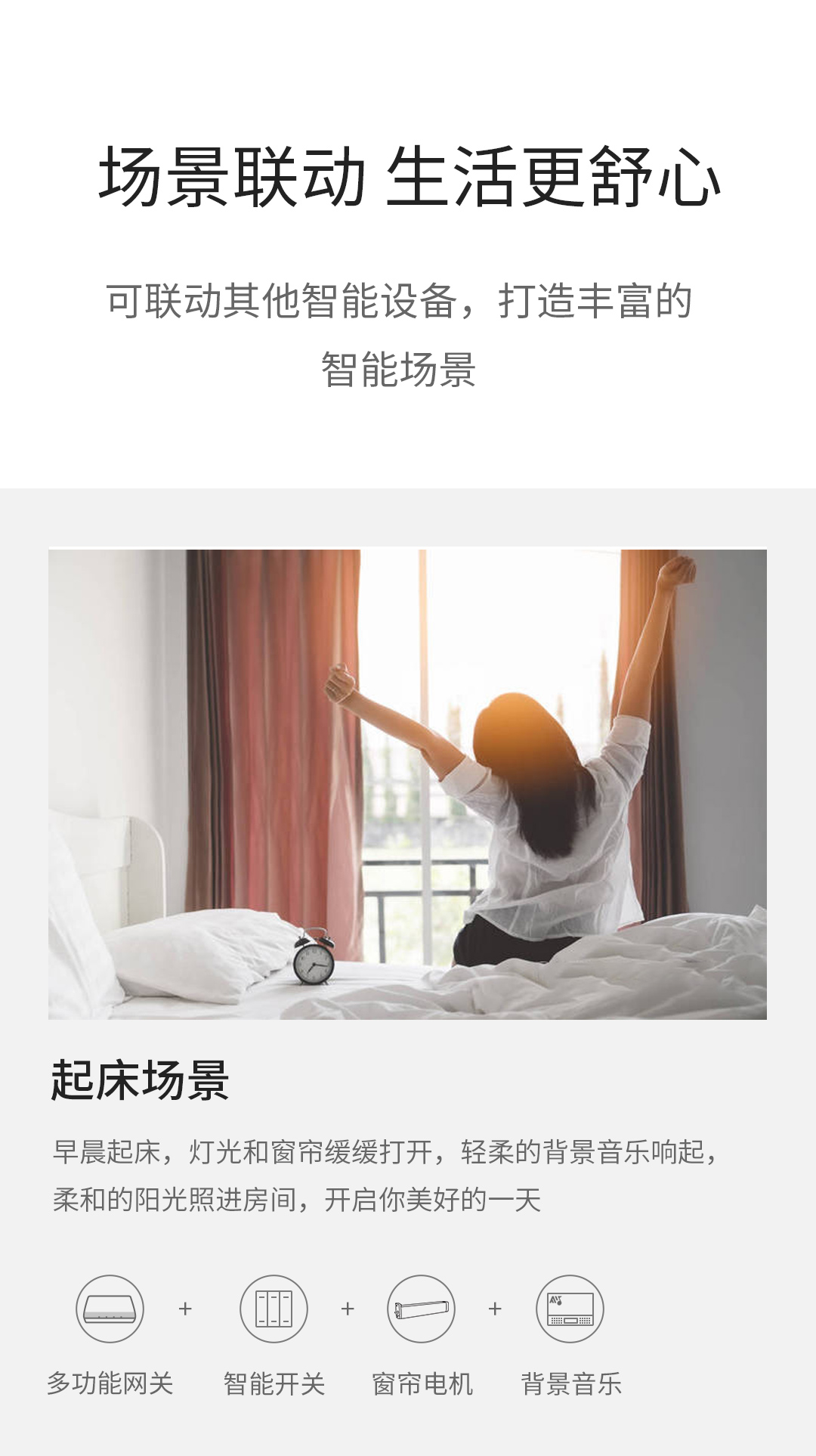 可使用手機(jī)APP、場(chǎng)景、語(yǔ)音、遙控、開關(guān)等多種控制方式
