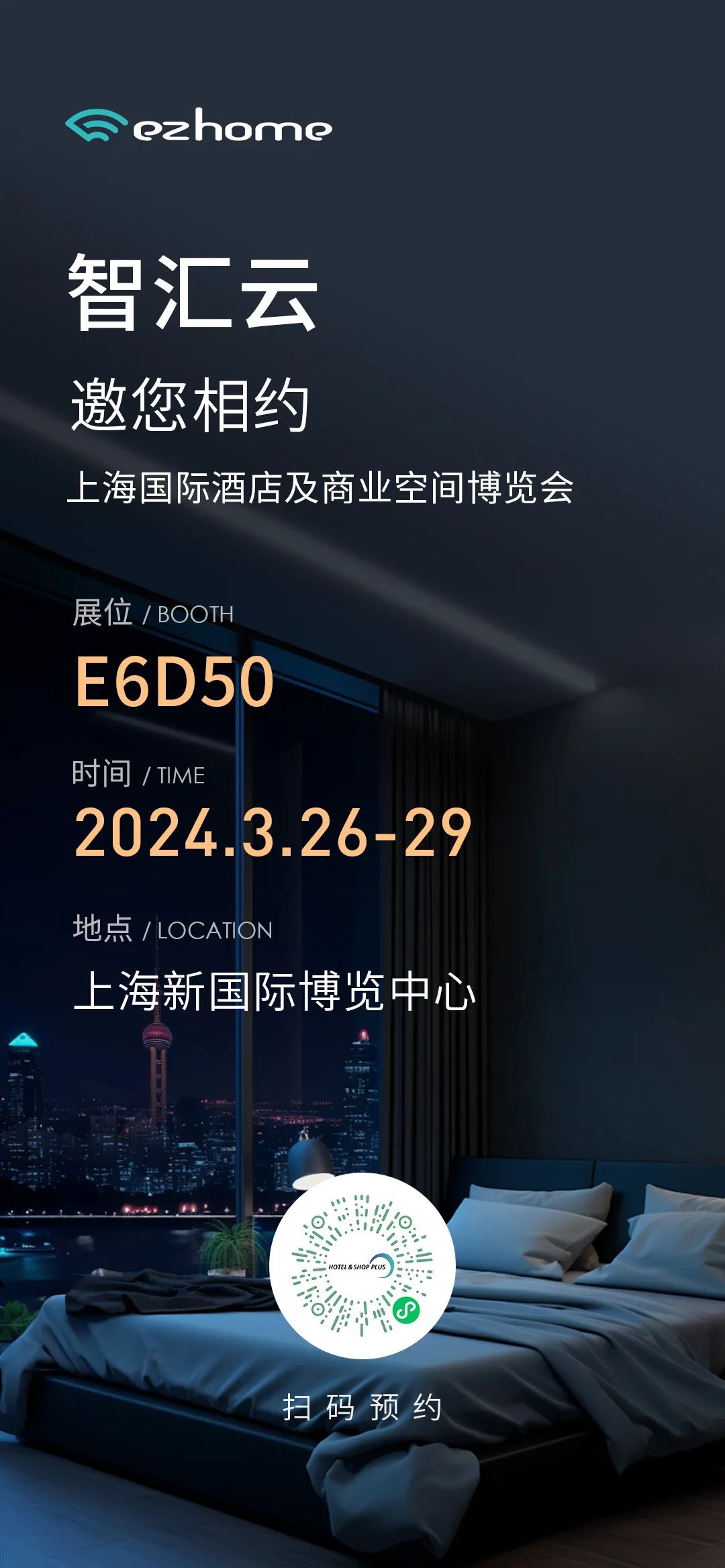 本次展會,智匯云誠摯邀請您蒞臨Hotel & Shop Plus上海國際酒店及商業(yè)空間博覽E6D50展位,與我們共同探索智慧酒店領域的無限可能!