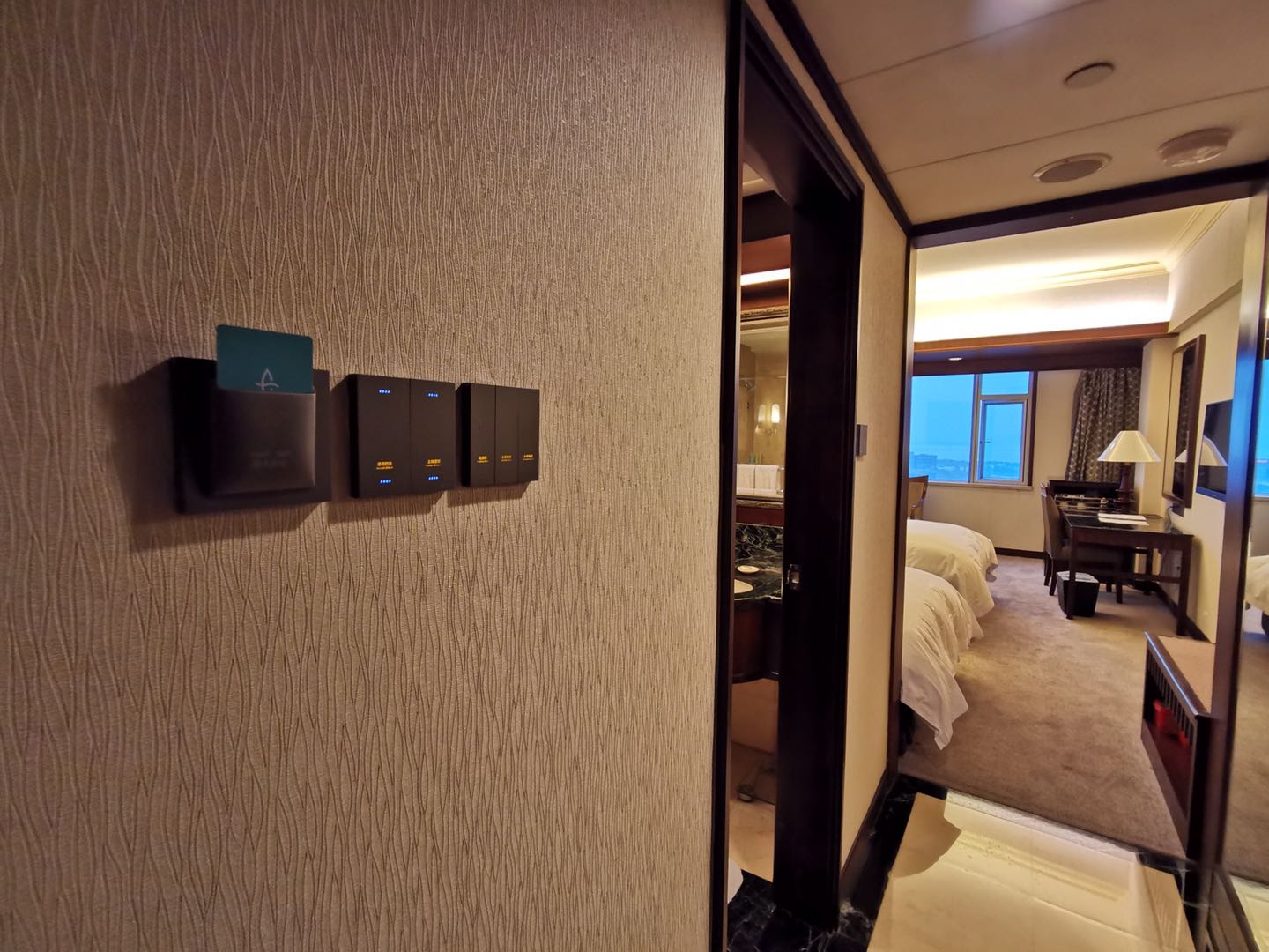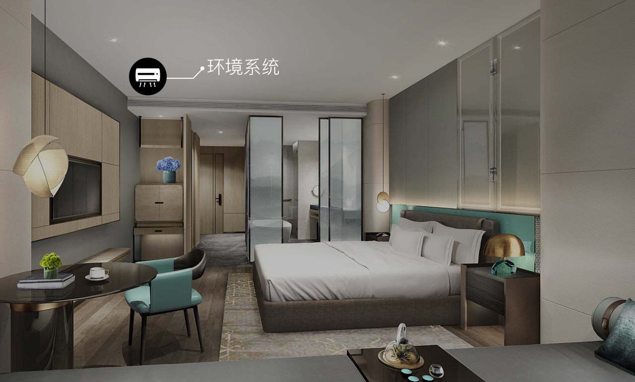 住客打開房門后,廊燈自動(dòng)點(diǎn)亮,電視可設(shè)置為自動(dòng)開啟,新風(fēng)系統(tǒng)啟動(dòng),開啟空調(diào),溫馨滿滿的歡迎客人入住。