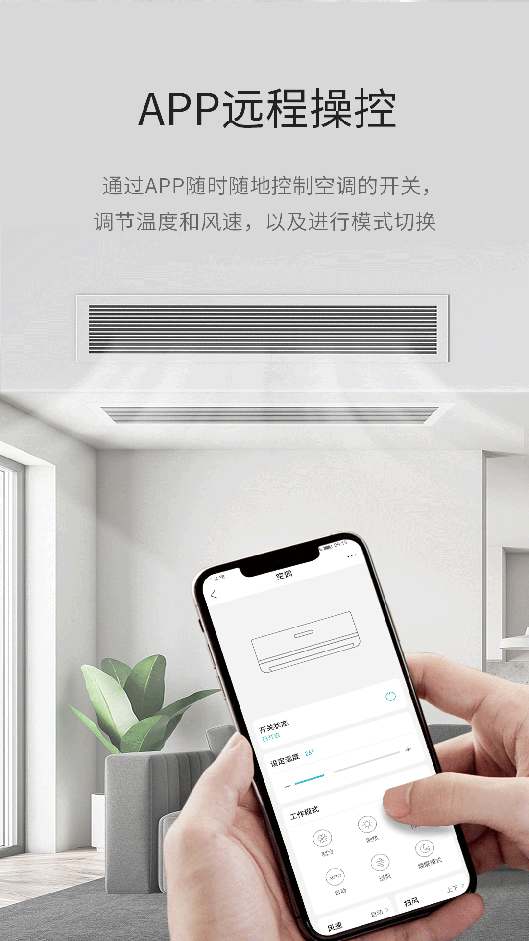 還可通過手機APP遠程操控空調(diào),包括空調(diào)的開關(guān)、溫度調(diào)節(jié)、模式切換等。出門在外,一鍵提前開啟空調(diào),調(diào)節(jié)適宜的溫度,無論屋外氣候多么惡劣,回到家里永遠溫暖如春。