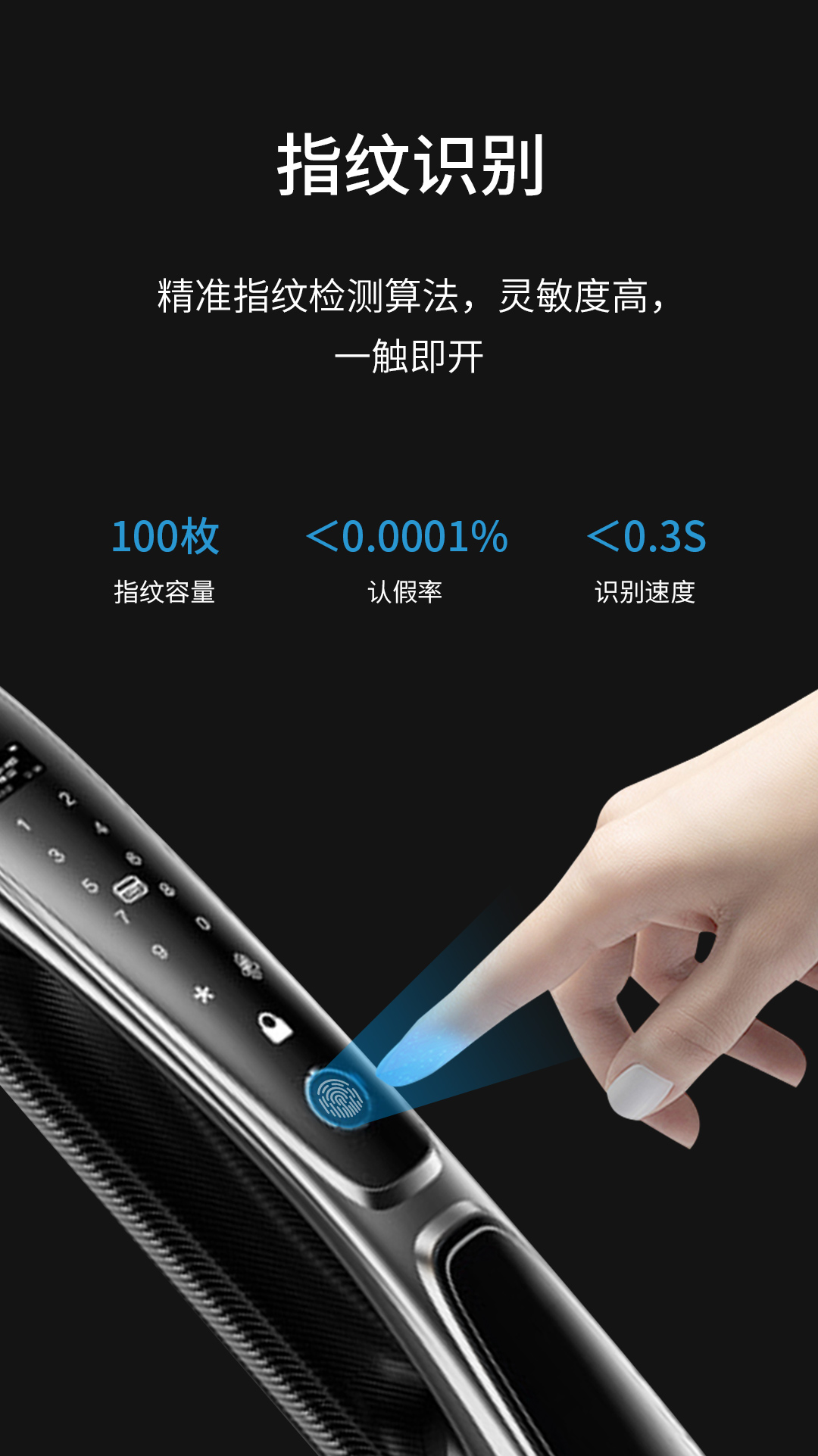 半導體指紋頭,使用先進的AI仿生芯片,能夠通過指紋拼接、圖像識別自學算法,儲存記憶常用指紋、人臉,越用越靈敏。指紋開鎖操作便捷,輕輕一觸,立刻打開家門。