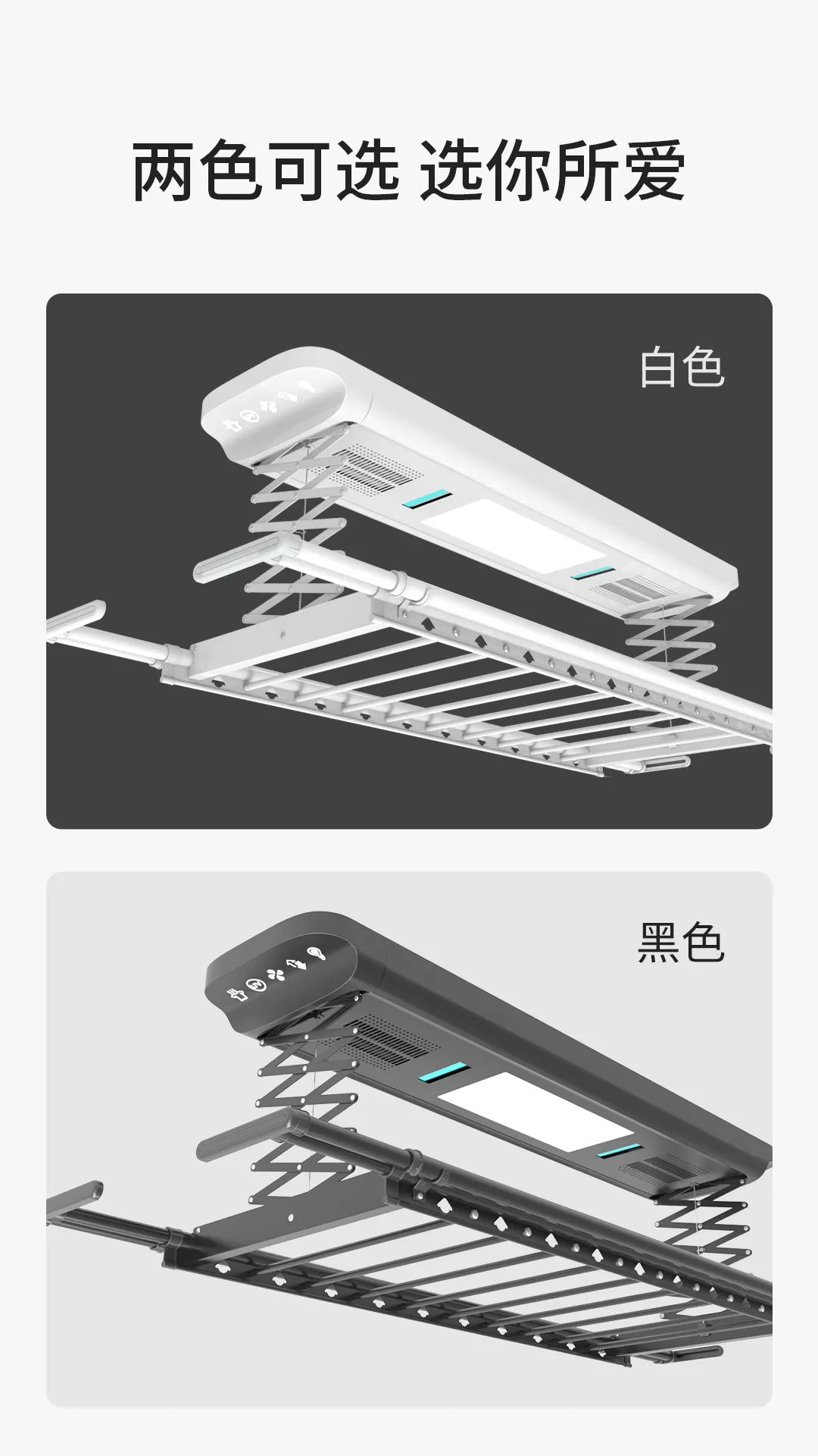 智匯云這款智能晾衣架采用太空白和簡(jiǎn)約黑的顏色款式,更加有現(xiàn)代感和時(shí)尚感,整個(gè)機(jī)身集成化設(shè)計(jì),流線造型,外觀簡(jiǎn)潔優(yōu)雅。整體搭配非常簡(jiǎn)約干練,完全沒(méi)有傳統(tǒng)晾衣架的笨重感。