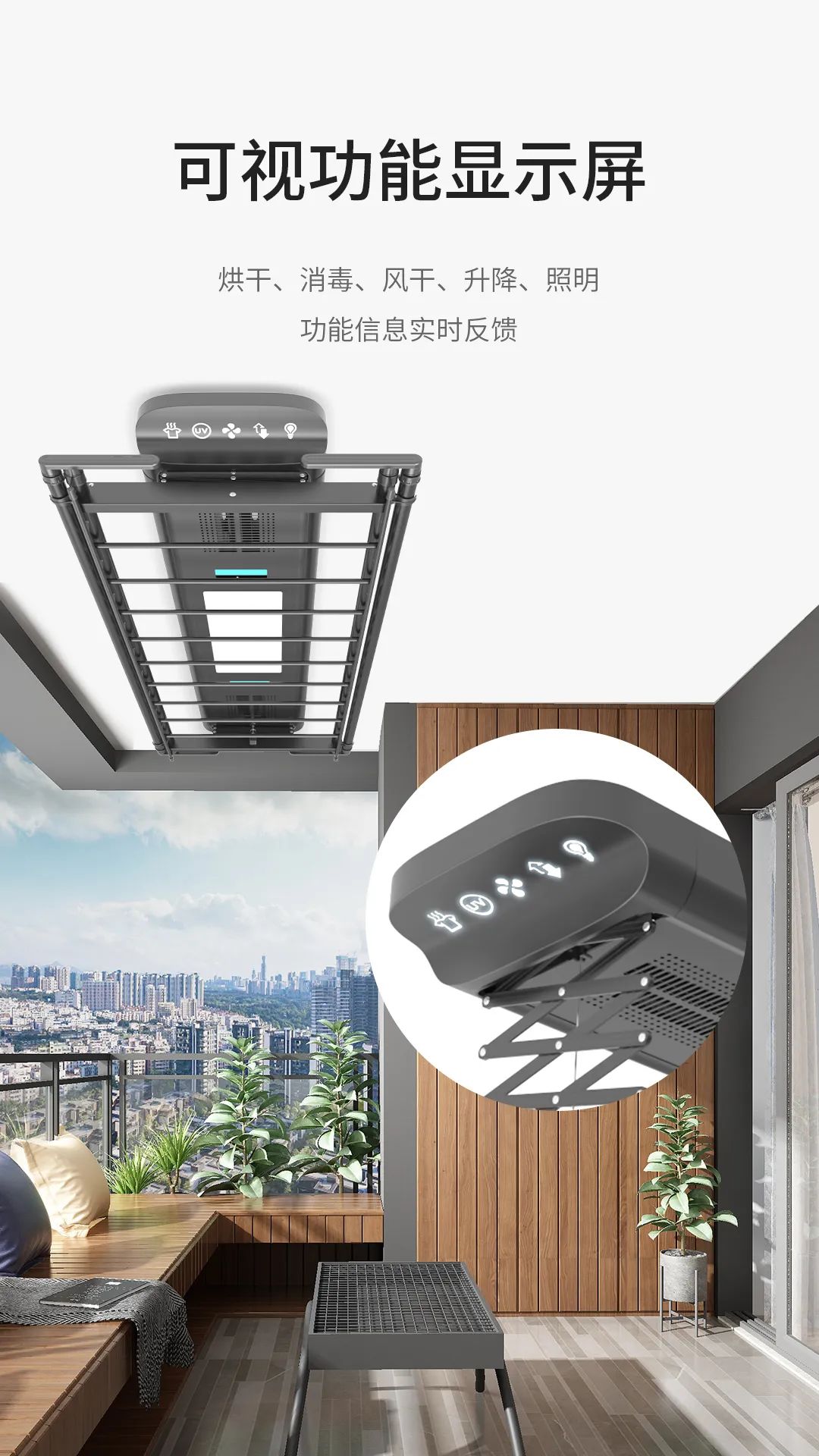 相比較傳統(tǒng)手搖晾衣架,智匯云智能晾衣架集成了更多功能,除了基礎(chǔ)的升降及照明外,還有烘干、UV殺菌、風(fēng)干、語(yǔ)音或APP遠(yuǎn)程控制等多種功能。并且還升級(jí)新增了可視功能顯示屏,用戶(hù)可以通過(guò)顯示屏實(shí)時(shí)查看晾衣架工作狀態(tài),實(shí)時(shí)反饋功能信息。