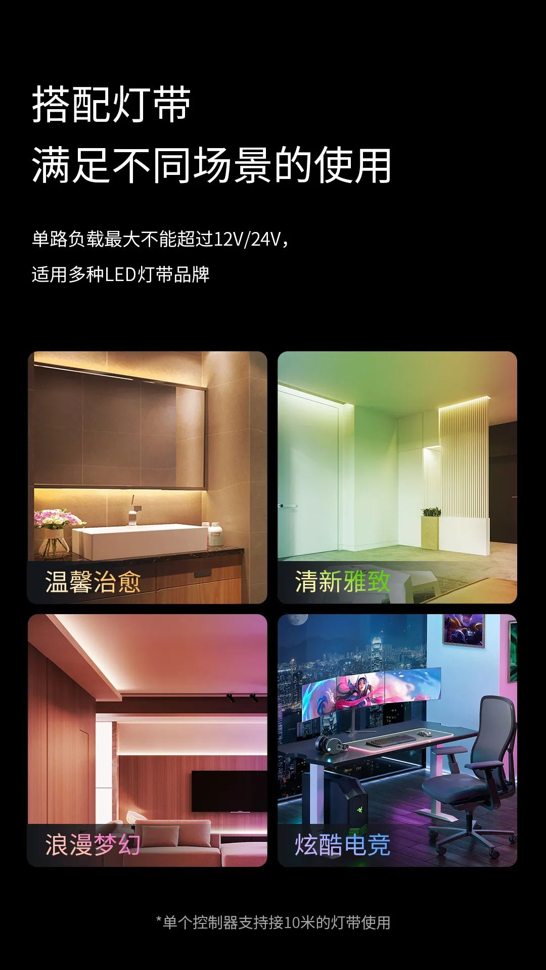 控制器搭配燈帶使用,可以根據使用需要在多種模式中自由切換,滿足不同場景下的使用需求。