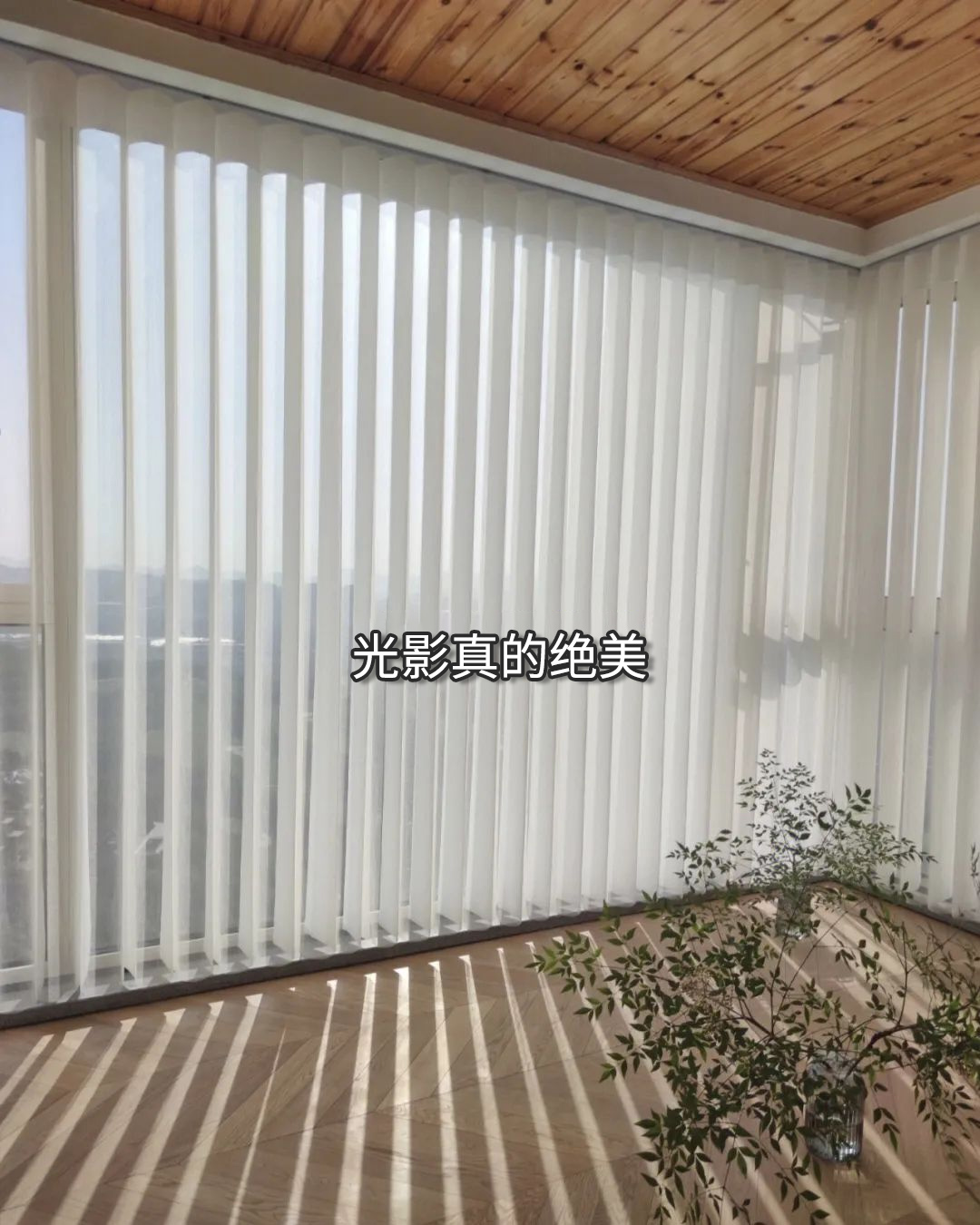 想象一下,某個(gè)陽(yáng)光明媚的午后,喚醒智能音箱,緩緩轉(zhuǎn)動(dòng)簾片,地面逐漸形成豎條光影,非常浪漫。