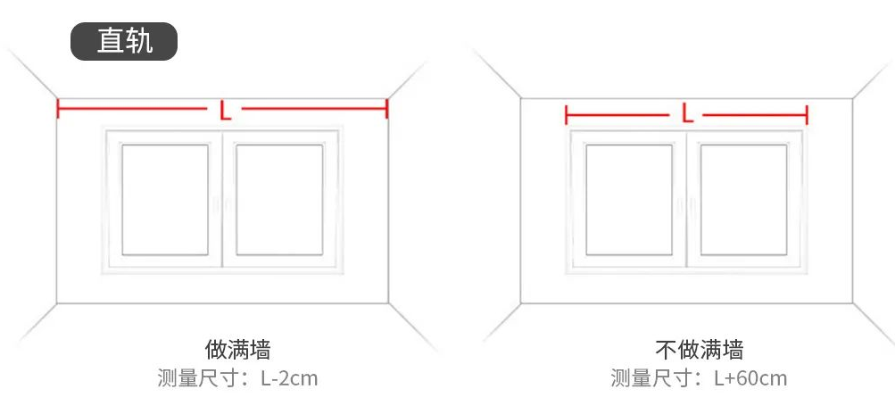 一種是滿墻測量,測量墻面的寬度,可以在測量出的墻面尺寸基礎(chǔ)上減2cm;另一種是不滿墻測量,測量窗戶的寬度,要在測量出的窗戶尺寸基礎(chǔ)上加60cm。