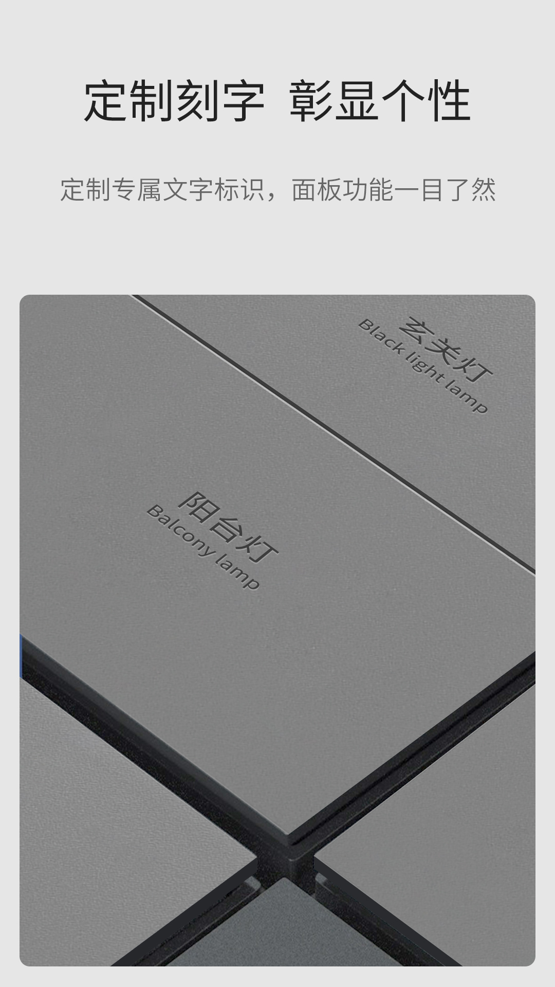 支持專屬自定義刻字服務,可根據(jù)用戶喜好和設備位置,定制面板刻字名稱,告別千篇一律。