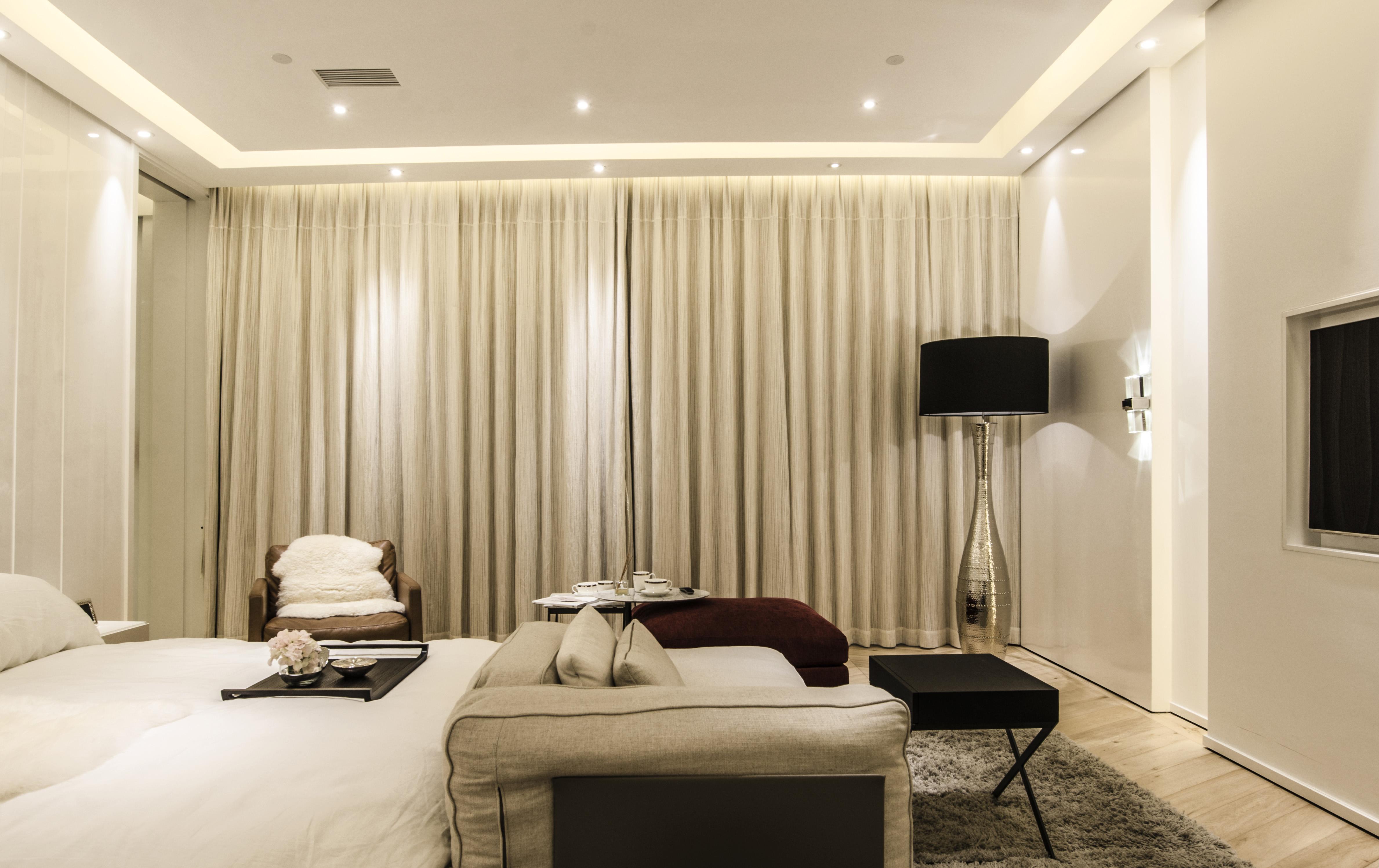 智能窗簾(包括3m窗簾軌道1條,內(nèi)置窗簾電機1個):于客廳處安裝,實現(xiàn)手機、遙控、語音、手拉和場景聯(lián)動等方式控制。