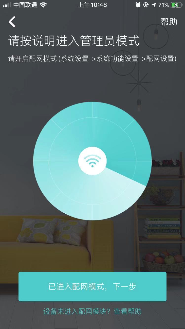 若彈框顯示W(wǎng)IFI環(huán)境錯(cuò)誤消息時(shí),需先確保智能門鎖已在開啟狀態(tài),并將手機(jī)跳轉(zhuǎn)至WIFI選擇界面,選擇對(duì)應(yīng)彈框消息中對(duì)應(yīng)WIFI,即可繼續(xù)進(jìn)行AP配網(wǎng),等待配網(wǎng)完成點(diǎn)擊下一步。