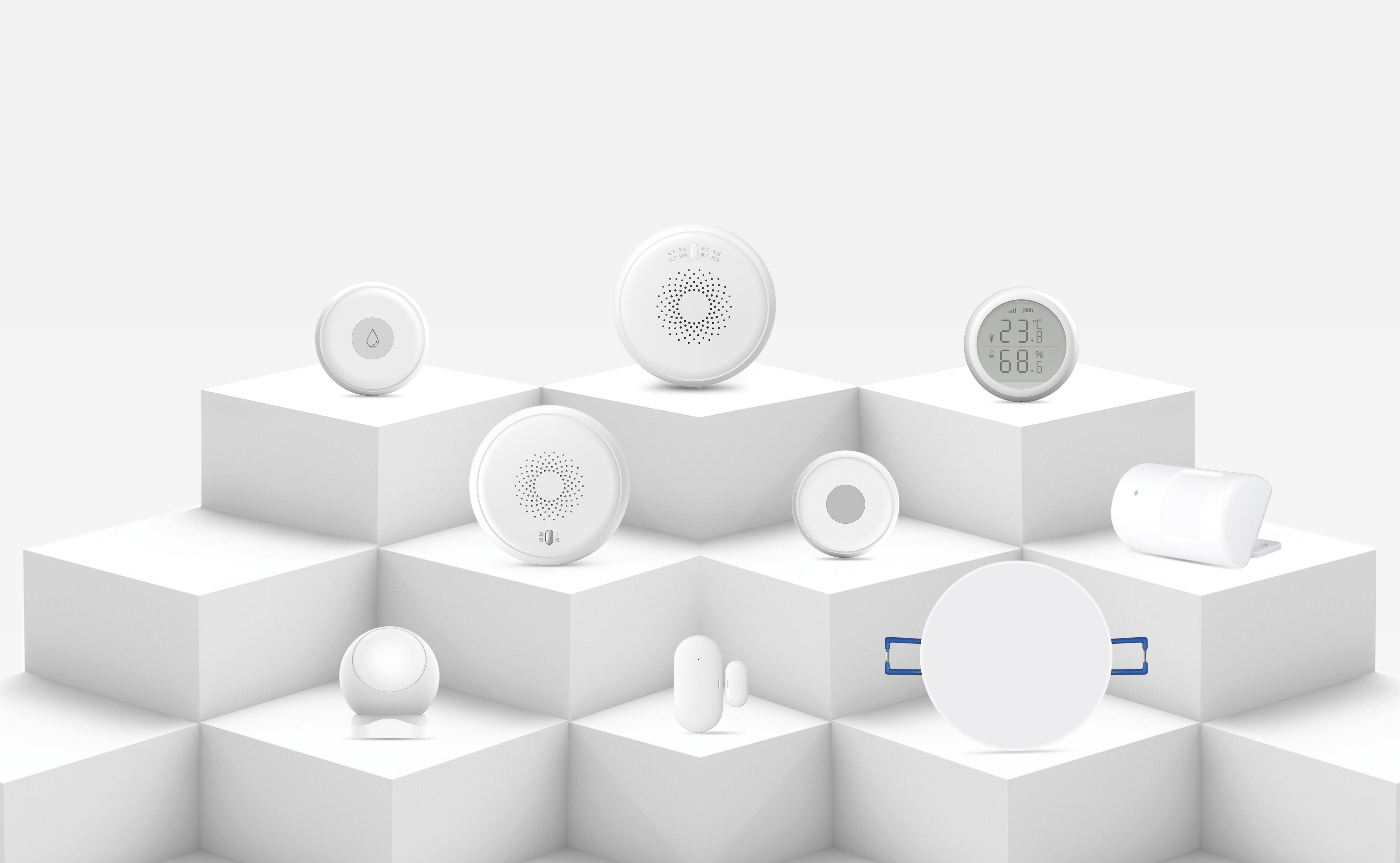 智能家居傳感器種類繁多,有門窗傳感器、移動傳感器、紅外人體傳感器、人體存在傳感器、溢水傳感器、煙霧傳感器、燃氣傳感器、溫濕度傳感器等多種類型。
