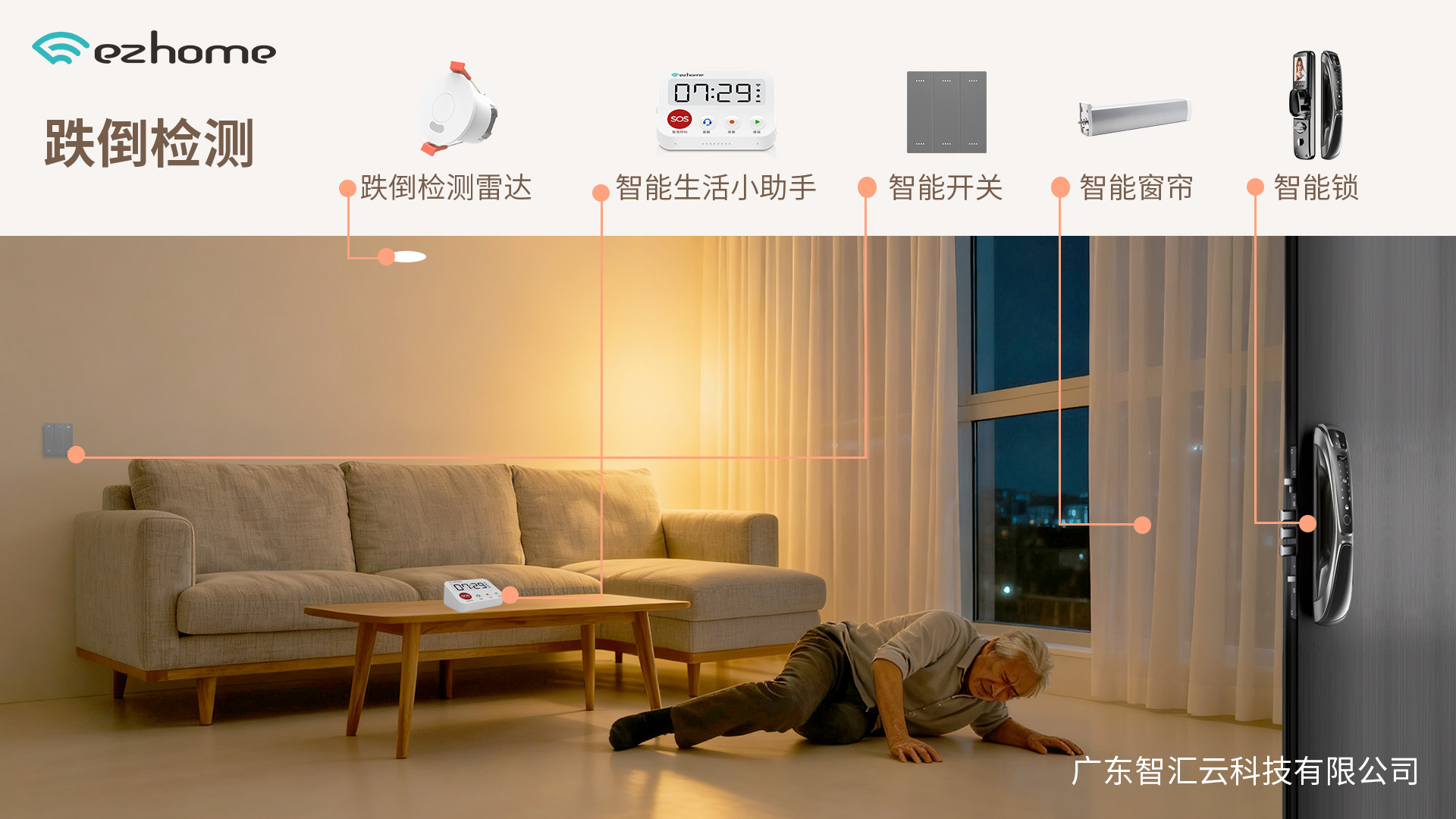 當(dāng)老人在客廳或衛(wèi)生間不慎跌倒,跌倒檢測雷達(dá)將立即識(shí)別險(xiǎn)情,觸發(fā)緊急求助(同步打開燈光、臨時(shí)解鎖入戶門,為救援爭取寶貴時(shí)間)。若長時(shí)間未檢測到老人活動(dòng),系統(tǒng)會(huì)主動(dòng)發(fā)出提醒,通知家人及時(shí)確認(rèn)狀況,有效防范獨(dú)居風(fēng)險(xiǎn),讓獨(dú)居生活多一重安心保障。