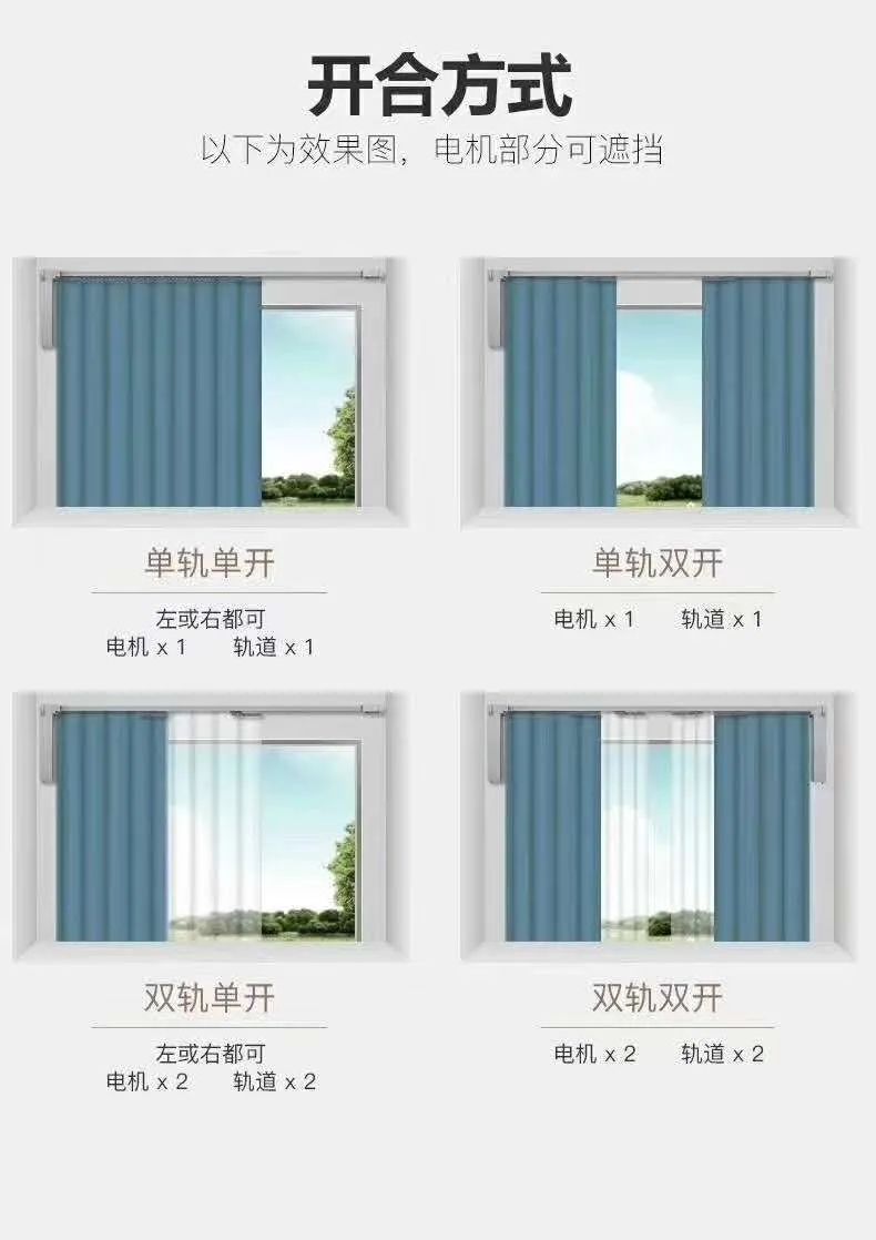 1、單軌電動窗簾,窗簾盒內徑寬度留10CM以上;