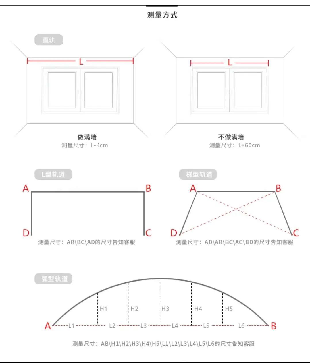 在購買電動窗簾時,對于自家窗戶的測量方式也很重要哦,提供的尺寸會直接影響到窗簾呈現的效果。