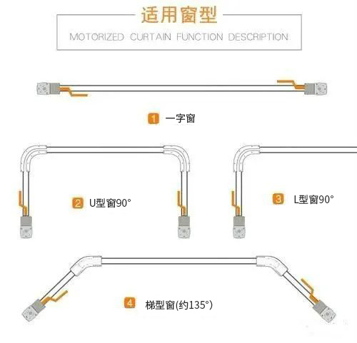 4、弧形軌道,可按照建筑物弧度造成彎曲弧型的窗簾軌道(注:弧度不得小于120°)。